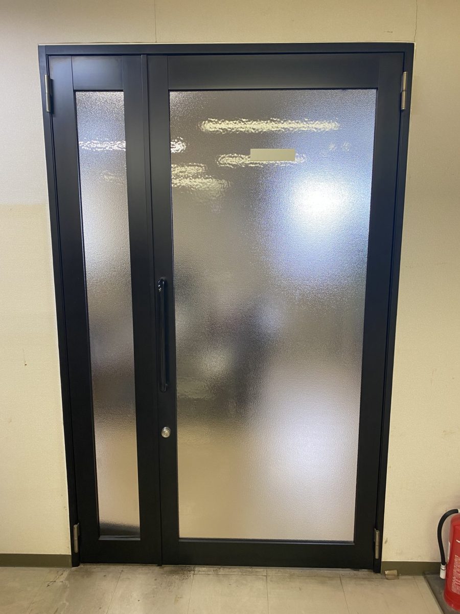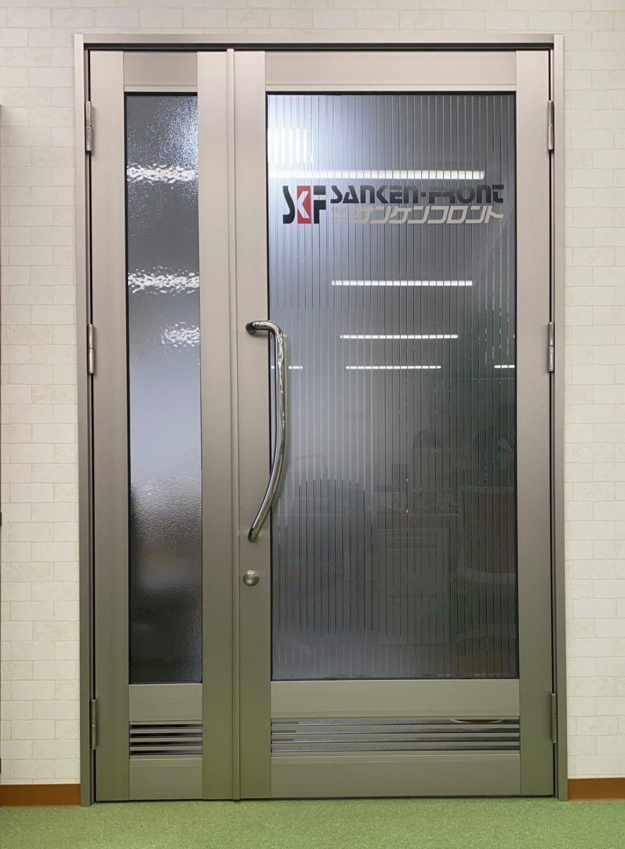 アルミ製建具(店舗用フロントサッシ) その他施設 親子開き丁番框ドア サンケンフロント 事務所 会長室 〈Before〉 もともと平凡な形の親子扉も... 〈After〉 事務所のリニューアルに伴い、色を明るいステンカラーに変え、扉の下側の横格子で、デザイン性と換気をUPした親子扉へ変身しました