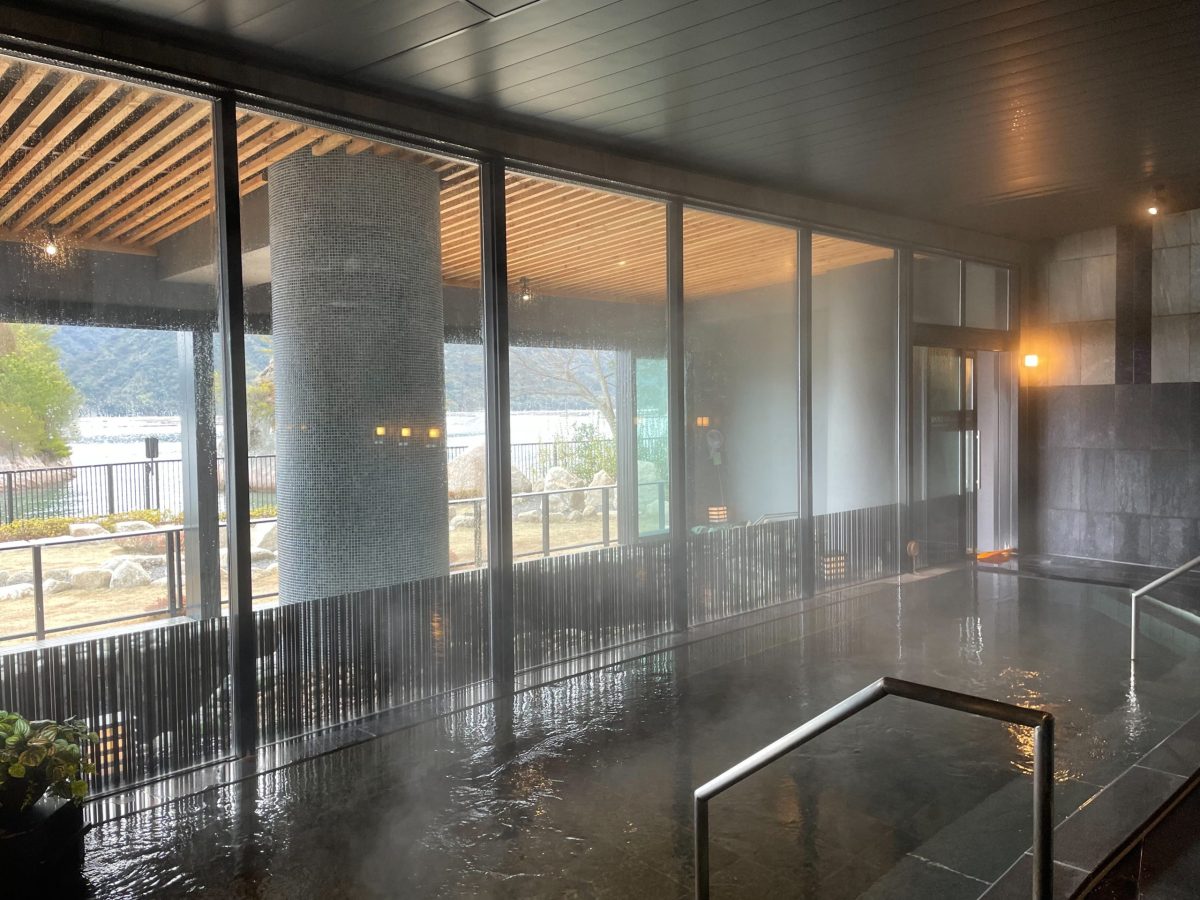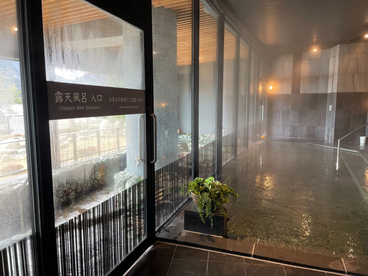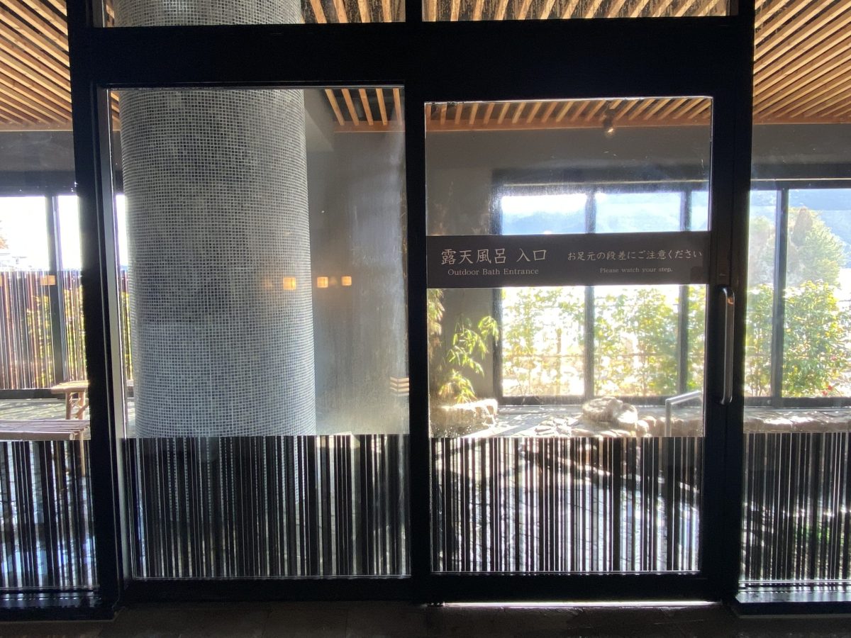 アルミ製建具(店舗用フロントサッシ) 商業施設・店舗 グランヴィリオホテル宮島 和蔵 様 廿日市市宮島口西1丁目1-37のグランヴィリオホテル宮島 和蔵 様の露天風呂入口の引戸+FIX窓を製作しました。 『内観』 『外観』